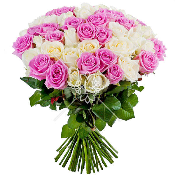 История любви - букет из 51 розовой и белой розы